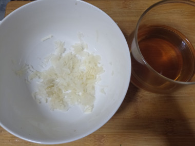 Затем ножки вынимаем, отмеряем винный уксус и чистим чеснок