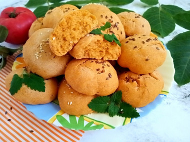 У меня остался томатный сок, который домашние уже не хотели пить. Благодаря сайту нашла ему применение, испекла печенье на томатном соке. Сначала было не понятно, как из таких простых ингридиентов может получиться печенье). Но все вышло в лучшем виде! Правда изделия больше похожи на булочки или пряники из-за мягкости и объема.