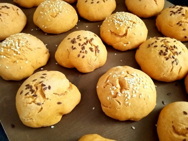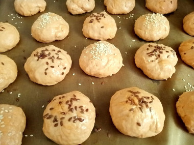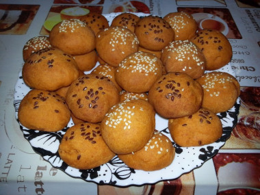 Печенье формировала руками, смазанными растительным маслом. Можно сделать совсем маленькие печеньки, у меня же получились размером с пряник. Половину посыпала кунжутом, а вторую половину льняными семенами.