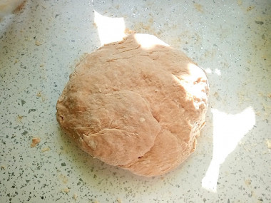 Сок у меня был магазинный с сахаром и солью, поэтому сахара взяла меньше, а соли щепотку добавила. Тесто получилось мягким и податливым, вымесила его на столе.