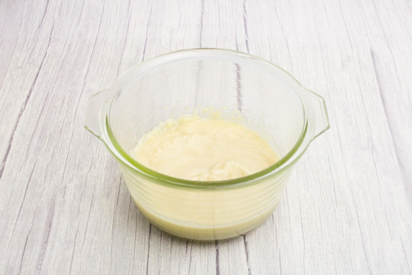 Не прекращая взбивания, влейте раствор желатина. Взбейте массу еще около 5-6 минут на умеренно высокой скорости миксера. Она станет пышной и воздушной.