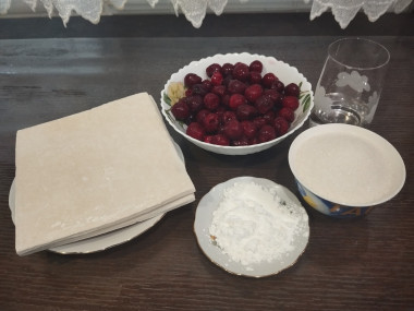 Как сделать слойки с вишнями из слоеного теста? Сначала подготовьте продукты для начинки. Свежую вишню нужно предварительно помыть, дать стечь воде на дуршлаге, обязательно удалите косточки. Если вишня замороженная, без косточек, то её нужно только разморозить. Слоеное тесто можно использовать как дрожжевое, так и бездрожжевое.