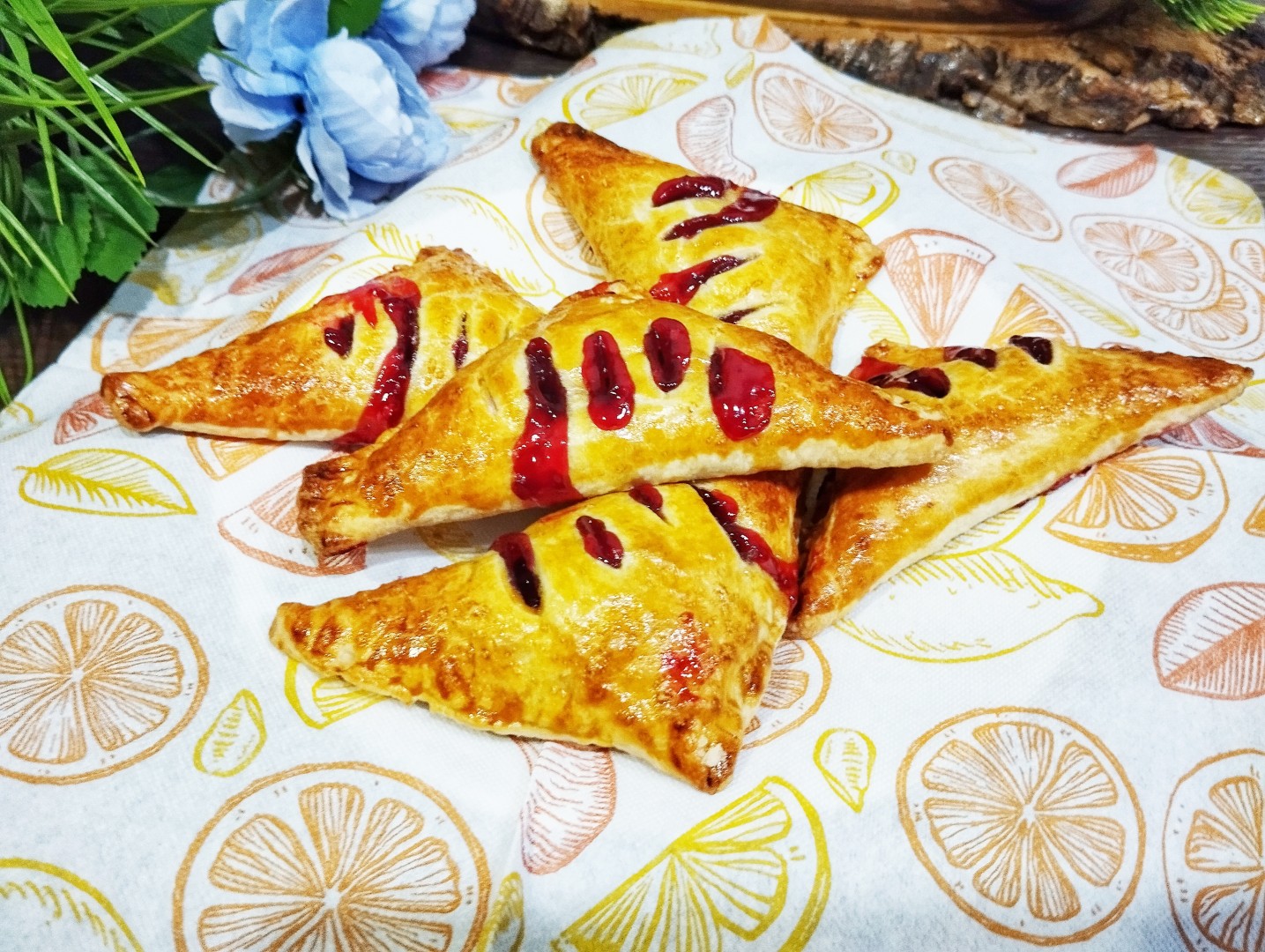Можно испечь такие слойки из любого слоеного теста. Из дрожжевого теста выпечка будет несколько пышнее.