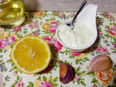 Как сделать соус Айоли классический в домашних условиях? Подготовьте продукты. Количество чеснока и масла дано примерное, все будет зависеть от того, как быстро загустеет соус, а это уже, в свою очередь, зависит от сорта масла и чеснока. Масло подойдет как оливковое, так и обычное подсолнечное. Но в любом случае выбирайте рафинированные сорта, чтобы соус не получился горьким. Лимонный сок вы можете не добавлять, но с ним вкус соуса получается богаче.