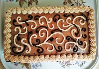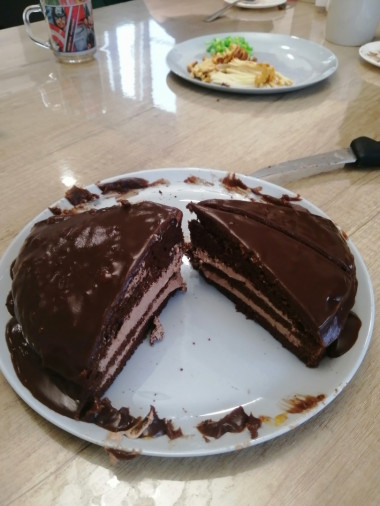 Торт получился бесподобный. Сфотографировать не успела. Все съели.