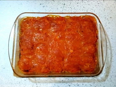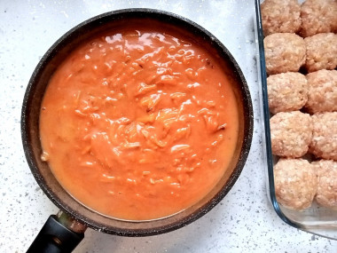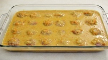 Получившимся соусом залейте тефтели в форме. Накройте фольгой и поставьте в духовку, предварительно разогретую до 180 градусов, на 35-40 минут. Ориентируйтесь по своей духовке.