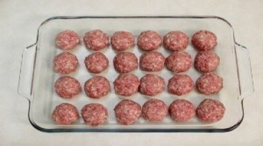 Для запекания подойдет любая жаропрочная форма. Я беру керамическую. Из мясной массы сформируйте тефтели и выложите их в форму.