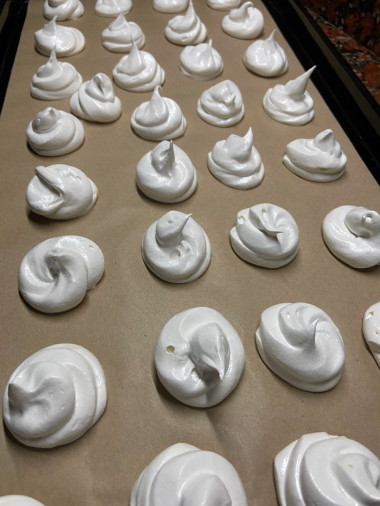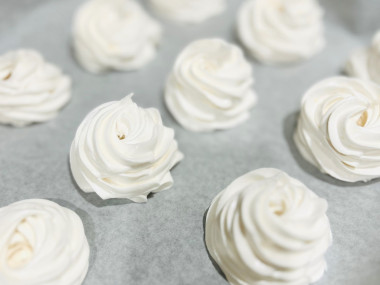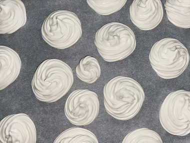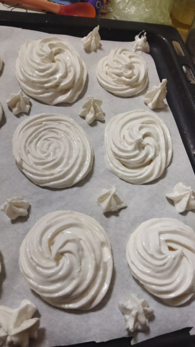 Противень застелите пергаментом. Лучше это сделать заранее по указанной выше причине. Отсадите на него половинки будущих зефирок любой формы.