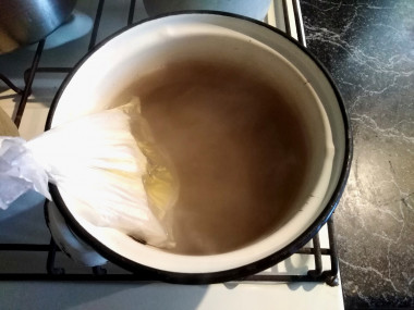 В кастрюле вскипятите воду. Положите пакет прямо в кипящую воду и варите на небольшом огне около 20 минут.