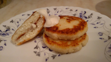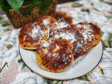 Затем руками сформировала сырники и обжарила на сковороде. Дополнительно в муке не обваливала.
