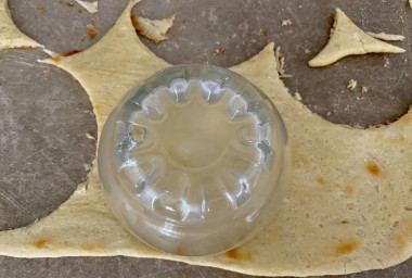 Помимо покупного, вы можете использовать и тесто собственного приготовления. Рецепт домашнего слоеного теста для этой выпечки вы можете выбрать в этом каталоге.