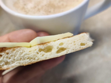 Я подавала такие лепешки с сыром к утреннему кофе. Это простое, но очень удачное, на мой вкус, сочетание.