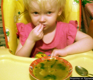 Супчик просто замечательный. Очень понравился моей маленькой дочке, она с удовольствием ела "ушки" из супа и сам бульон.