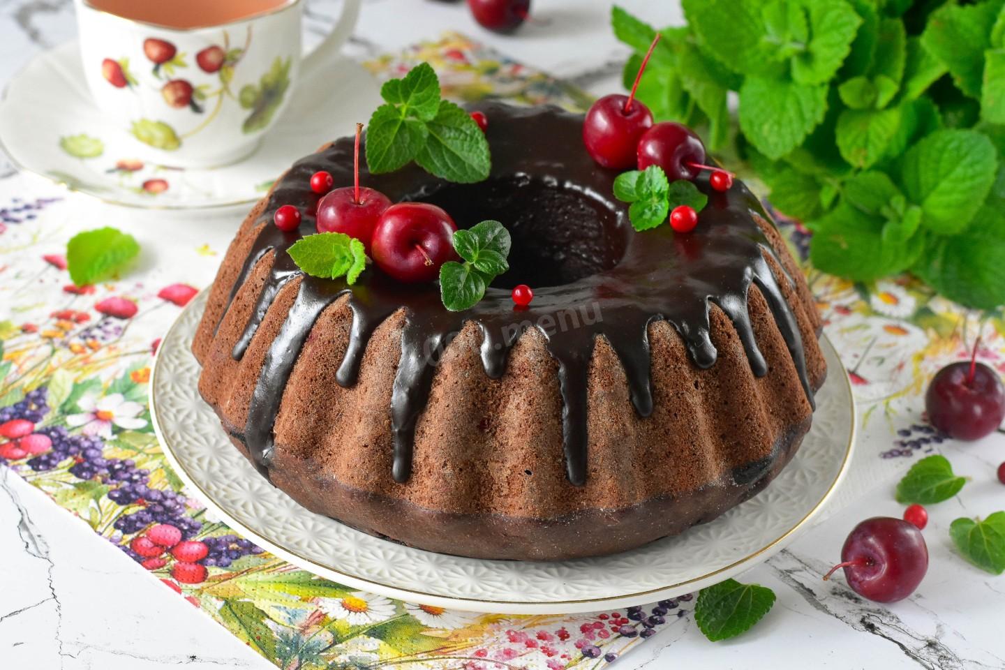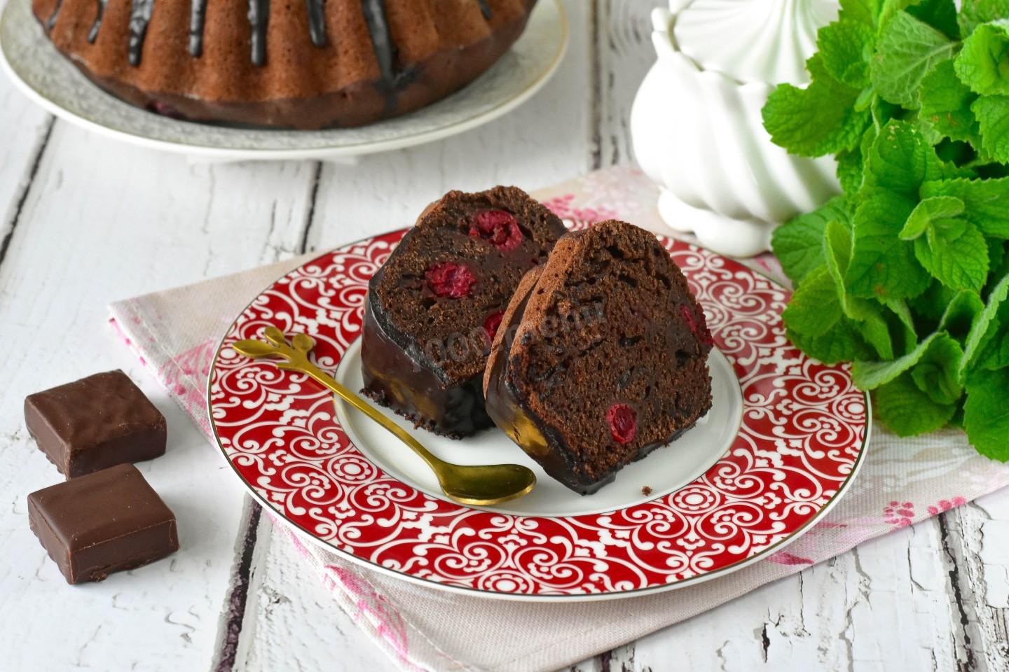 Дайте маннику слегка остыть в форме, чтобы он немного закрепился, затем аккуратно переложите его на сервировочное блюдо. Теплый, но не горячий кекс равномерно полейте шоколадной глазурью, позволяя ей стекать по бокам. Сразу же украсьте манник свежими ягодами (малиной, клубникой или вишней), листиками мяты. Подавайте кекс к столу, нарезав на порционные кусочки, в качестве прекрасного дополнения к чаю или кофе. Приятного аппетита!