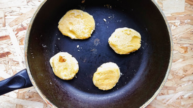 Хорошо разогрейте сковороду, иначе лепешки могут прилипнуть. Я взяла сковороду с антипригарным покрытием, у нее толстое дно, она хорошо печет. Также подойдет чугунная сковорода. Выложите на раскаленную сковороду лепешки. Пятая у меня не поместилась, я ее пекла отдельно. Как выбрать сковороду читайте в статье в конце этого рецепта.