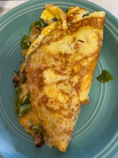 Аккуратно переложите омлет на тарелку, наклонив сковороду. Омлет должен с легкостью соскользнуть с неё. Приятного аппетита!
