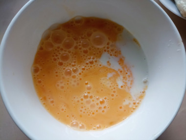 Тем временем яйца смешайте с молоком, добавьте соль по вкусу и немного взбейте. Взбивать нужно именно чуть-чуть, так, чтобы все компоненты смешались, но яйцо сохранило свою структуру