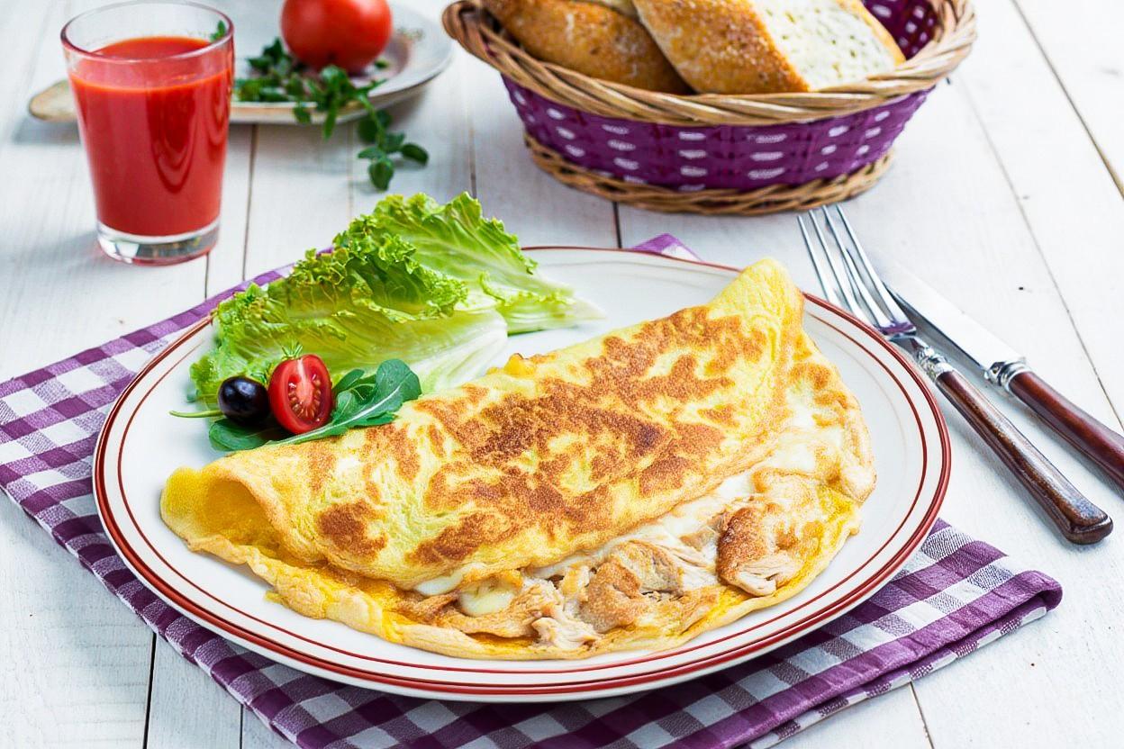 Поделюсь замечательным вариантом омлета с курицей. Мне очень понравились аппетитные яичные блинчики с начинкой из курочки.