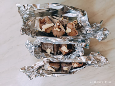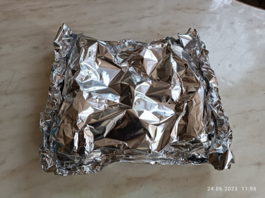 Также завернула в дополнительный слой фольги, показалось, что одного слоя не достаточно. Фольга попалась недостаточно плотная.