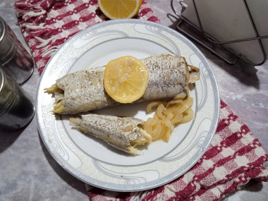 Решила приготовить минтай в фольге запечённый в духовке по этому рецепту. Купила рыбку и через поиск нашла этот рецепт. Мне он понравился своей простотой и быстротой приготовления. Рыбку я почистила, вымыла и натерла солью и перцем, а также сбрызнула соком лимона. Полила рыбку растопленным сливочным маслом. От себя ещё решила положила под минтая полукольца лука и кружочки лимона. Запекала рыбку в фольге в нагретой до 180 С духовке 25 минут. Великолепный аромат меня поразил. Вроде самый простой минтай, а как вкусно получилось. Рыбка сочная, нежная и мягкая, преобладает сливочный вкус. Лучок хорошо пропёкся и отлично дополнил блюдо. Лимончик естественно обогатил рыбный вкус. Юшечкой, которая выделилась в процессе приготовления, я полила картошку пюре. Это идеальное блюдо к ужину. Легко, аппетитно, сытно и полезно. Замечательный рецепт! Большое спасибо автору 😊