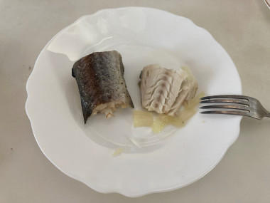 Хотелось показать, как выглядит рыба с вырезанными под углом плавниками. Получается минимум мелких костей в готовом блюде.