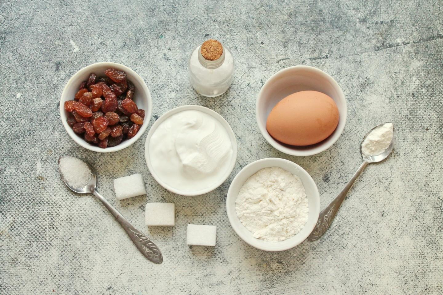 Подготовьте все необходимые ингредиенты для приготовления. Изюм переберите, удаляя палочки и мусор. Залейте его кипятком на 5-10 минут. Затем слейте воду, изюм промойте и откиньте на сито, чтобы жидкость полностью стекла. Разложите изюм на бумажном полотенце и обсушите. Подробнее о подготовке сухофруктов читайте в конце рецепта. Яйца хорошо вымойте в горячей воде и вытрите насухо. Включите духовку разогреваться до температуры 180 градусов.
