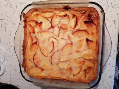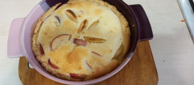 Прекрасный рецепт!!! Я сделала полторы порции, потому что у меня форма шире. Это прекрасная задумка для любых фруктов. У нас в Молдавии этот рецепт можно использовать для большого разнообразия плодов и фруктов. А ещё я думаю, что такой способ готовки очень хорошо подойдёт и для овощной начинки , и для мясного фарша. Только вместо сахара можно будет добавить специи для овощей и мяса. Спасибо за идею!!!