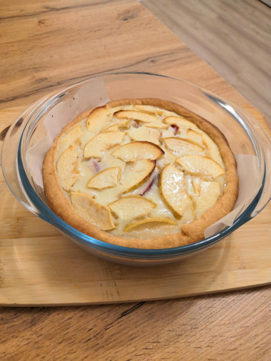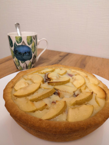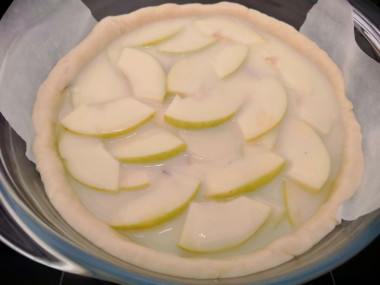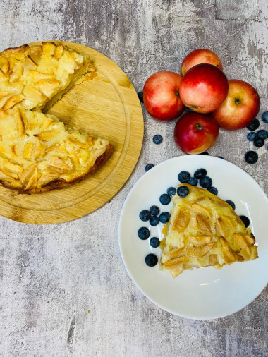 Песочное тесто в сочетании с нежной заливной и кислинкой яблок. Получилось очень вкусно. Вся семья оценила. Спасибо за рецепт!