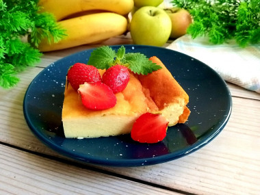 Запеканка получилась чудесной! Она невероятно нежная, сливочная, с приятным молочным привкусом. Напоминает чизкейк!