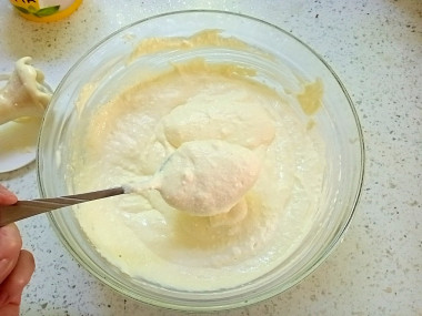 В подходящей чаше для взбивания соедините творог и яйца. Перемешайте все с помощью миксера. Для более однородной консистенции творог протрите через сито. Или просто пробейте с помощью погружного блендера.
