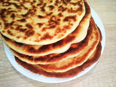 Можно обжаривать и на сухой сковороде без масла, но такие лепешки практически не поднимаются, нет воздушных пузырьков, они более плотные. Попробуйте оба варианта, чтобы выбрать, какой больше нравится. Мне понравился с маслом. Готовые лепешки сложите друг на друга и подайте к столу. Приятного аппетита!