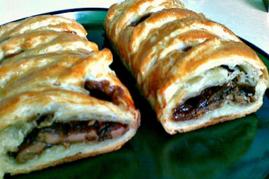 Рулет из слоеного теста, с шоколадом и орехами, готов. Приятного чаепития!