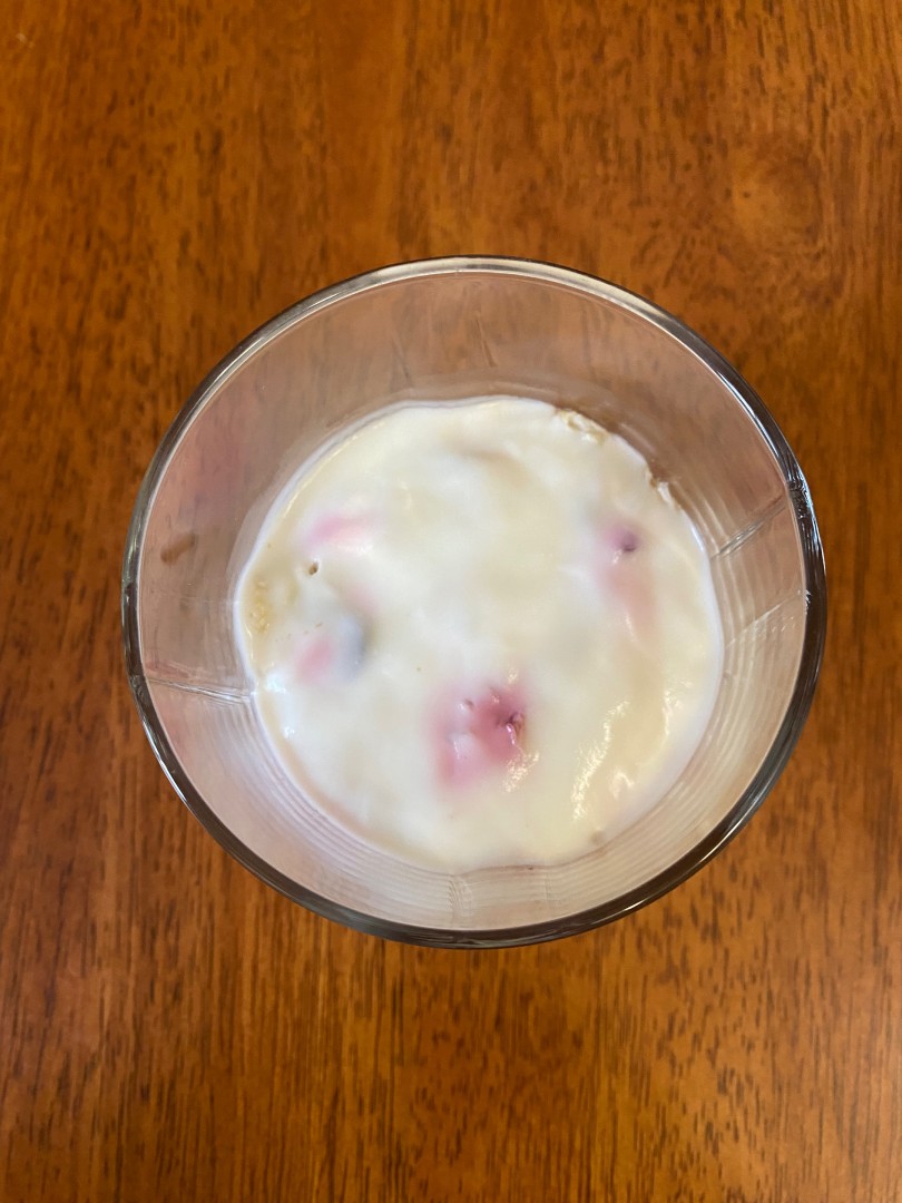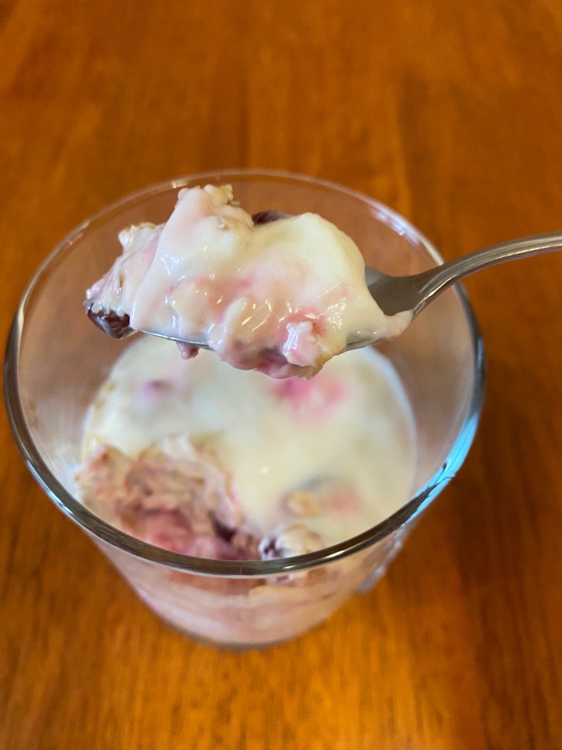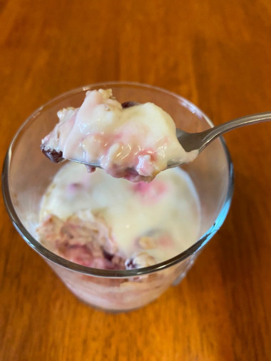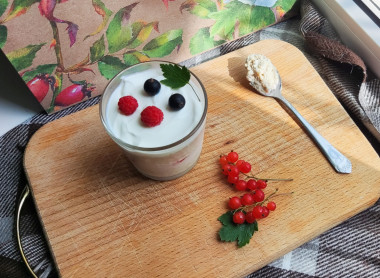 Йогурт вишневый: Натуральный йогурт + немного варенья, меда или фруктового пюре.