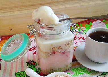 Проснись и съешь! Готовый завтрак ждет тебя в холодильнике. Ленивая овсянка в банке с йогуртом - это десерт, который идеально подходит для утра. Он заряжает энергией и клетчаткой, делая начало дня по-настоящему правильным. Это настоящее спасение для всех, кто бежит с утра на работу или учебу.