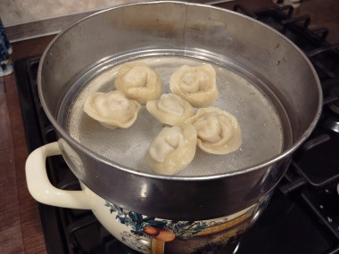 Вкусные пельмени можно не только варить,но и готовить пельмени на пару. Готовила на сите, которое установила на кастрюлю.