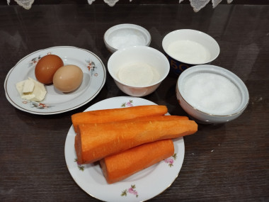 Аккуратно отделить белки от желтков. Белки взбиваем с сахарным песком и аккуратно вливаем в кастрюлю с морковью. Посолите.