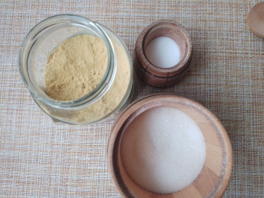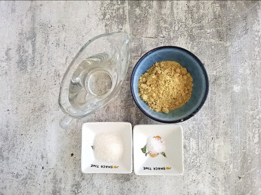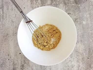 Высыпьте в одну посуду горчичный порошок, сахар и соль.