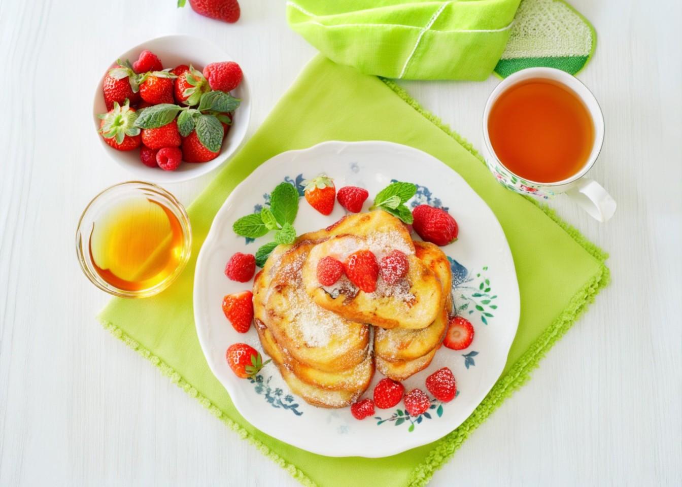 К таким гренкам можно подать в дополнение джем, мед или варенье.