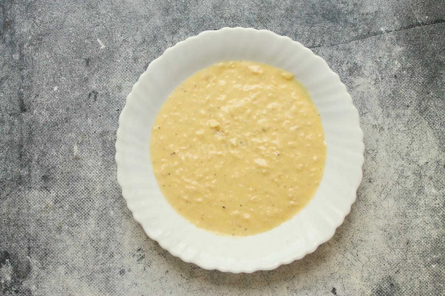 Идеальная консистенция кляра - как жидкая сметана. При необходимости, если кляр получился слишком жидким, добавьте ещё муки. Если густым - добавьте воды. Снова тщательно перемешайте, чтобы не образовались комочки.