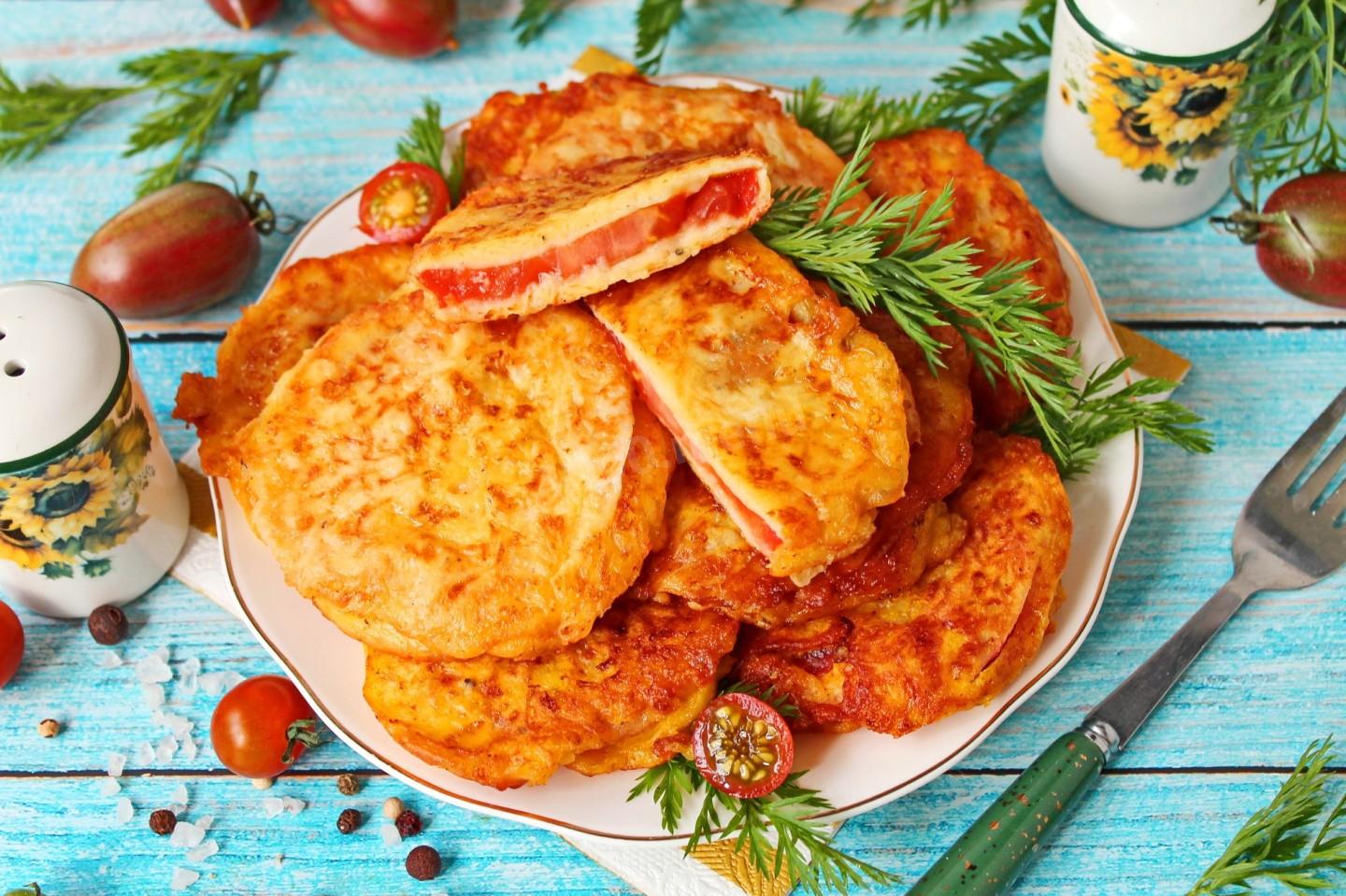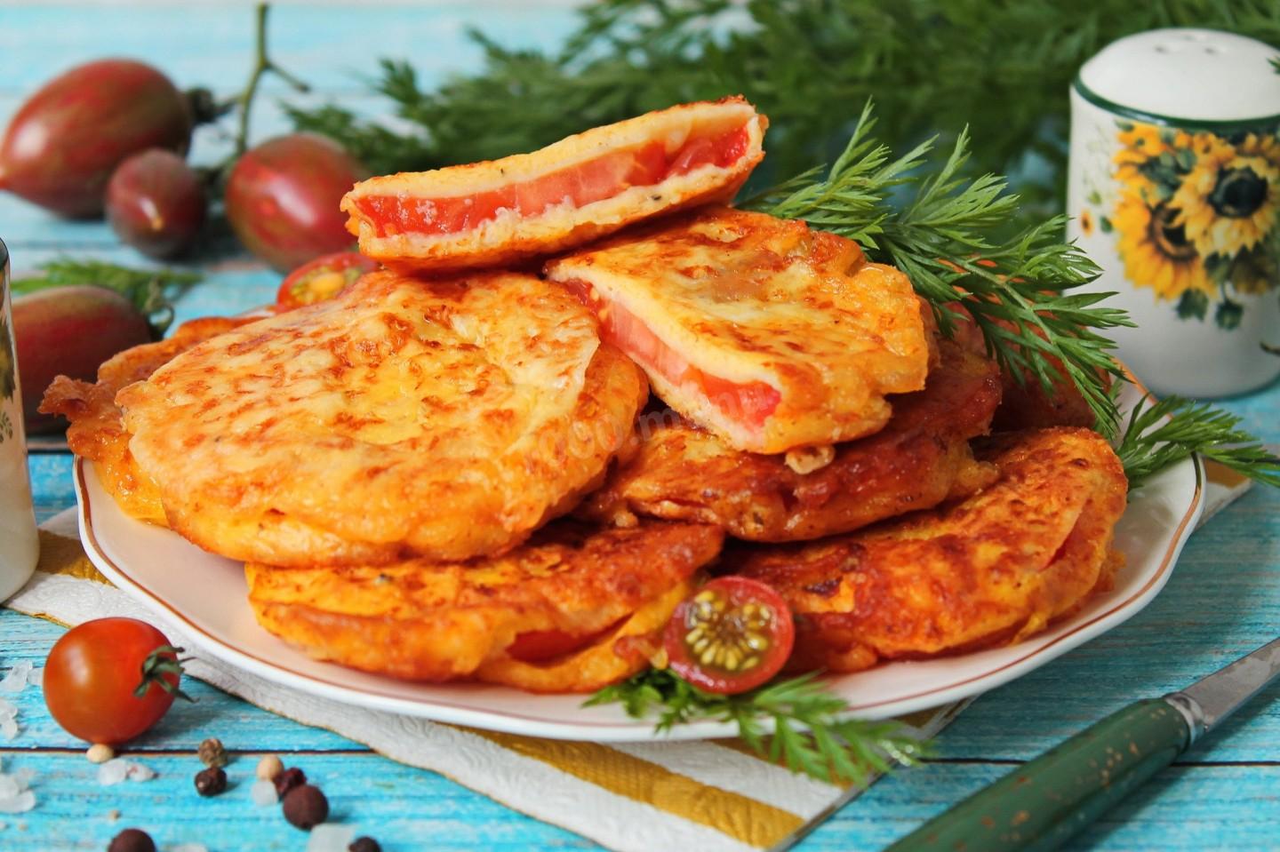 . Кляр не стекает с ломтиков помидор и лишняя влага не попадает в сам кляр. Завтрак получился супер!!! Замечательные сырные оладушки с сочной помидоркой внутри. Спасибо за рецепт!