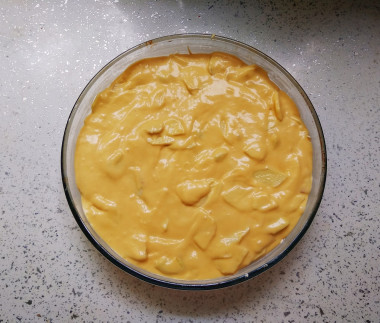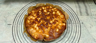 Сахара по привычке положил меньше, на 30гр. Яблок взял 650г - это было небольшой ошибкой, в итоге часть осталась, как написано в рецепте и нужно брать, после очистки останется столько сколько надо. Масло использовал топленое, 40г вместо 50г.