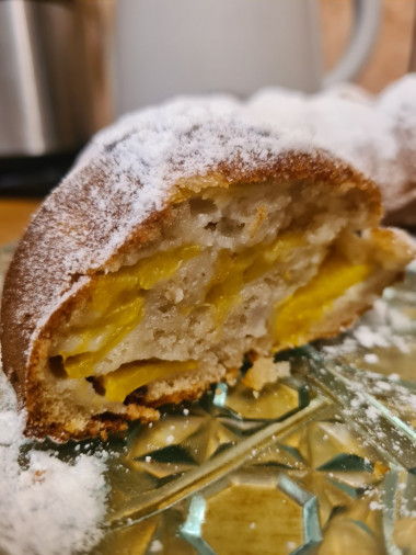 А сегодня по этому рецепту сделала пирог со свежими персиками, только тесто чуть погуще завела. Аромат стоял на весь дом)