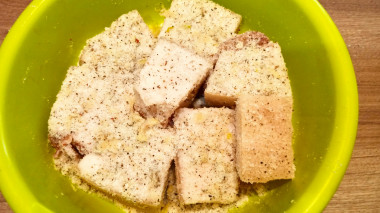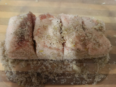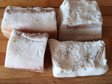 Получившейся смесью обильно натрите куски сала со всех сторон.