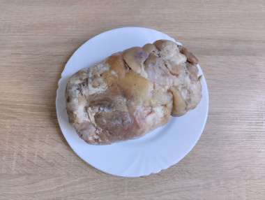 Последнее время я увлеклась блюдами с высоким содержанием коллагена. А тут вот встретился рецепт свиной рульки вареной, который можно совместить с приготовлением холодца)) Проварила я свиную рульку вместе с коленцем и ножкой, как в рецепте, около 3-х часов. Затем вынула косточки из мяса. Но у меня не получилось сделать это так аккуратно, как на фото в рецепте. Я даже, если честно, на этом этапе совсем потеряла надежду на то, что у меня выйдет что-то толковое)) Поступила следующим образом - развернула пищевую плёнку, выложила на неё кусочки рульки, смазала их солью, перцем и измельчённым чесноком, затем сложила из них конструкцию по типу пазлов, туго замотала плёнкой, получившуюся колбаску зафиксировала резинками и поместила под гнёт (в качестве груза использовала диск от гантели). Выдержала в холодильнике часов 14-15. И случилось чудо - кусочки мяса склеились и получилась удивительно вкусная и красивая ветчина! Я просто в восторге от этого блюда! Оставшиеся кости и ножку я доварила ещё в течение 3-х часов, получилась ещё и тарелка сытного холодца. Отличный рецепт, приготовила в качестве повседневного блюда, но обязательно приготовлю такое к празднику. Спасибо!