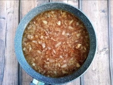 Влейте муку в сковороду. Перемешайте и доведите все снова до кипения. По желанию воды можно подлить больше, в зависимости от того, сколько подливы вы хотите получить в итоге.
