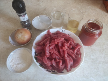 Как сделать поджарку из говядины с подливкой? Подготовьте для этого необходимые ингредиенты. Для жарки выбирайте мякоть молодой говядины без костей и без прожилок.