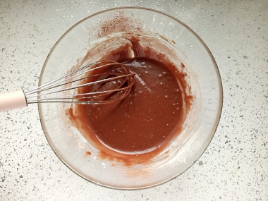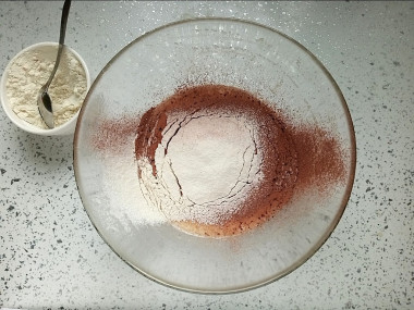 Добавьте в миску какао-порошок. Какао должно быть высшего сорта без всяких добавок в виде сахара или сухого молока. И лучше всего какао-порошок тоже просеять, как и муку, чтобы разбить в нем все возможные комочки и равномерно вмешать в тесто.