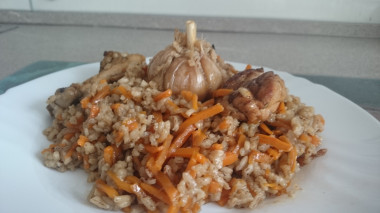 Рис брала для "плова". Из всех частей курицы выбрала - бедро, которое предварительно замариновала на пол часа в соевом соусе - таким образом уберегла себя от "сухого" мяса, что очень присуще куриной грудке. На вкус не повлияло, а мясо просто тает во рту!