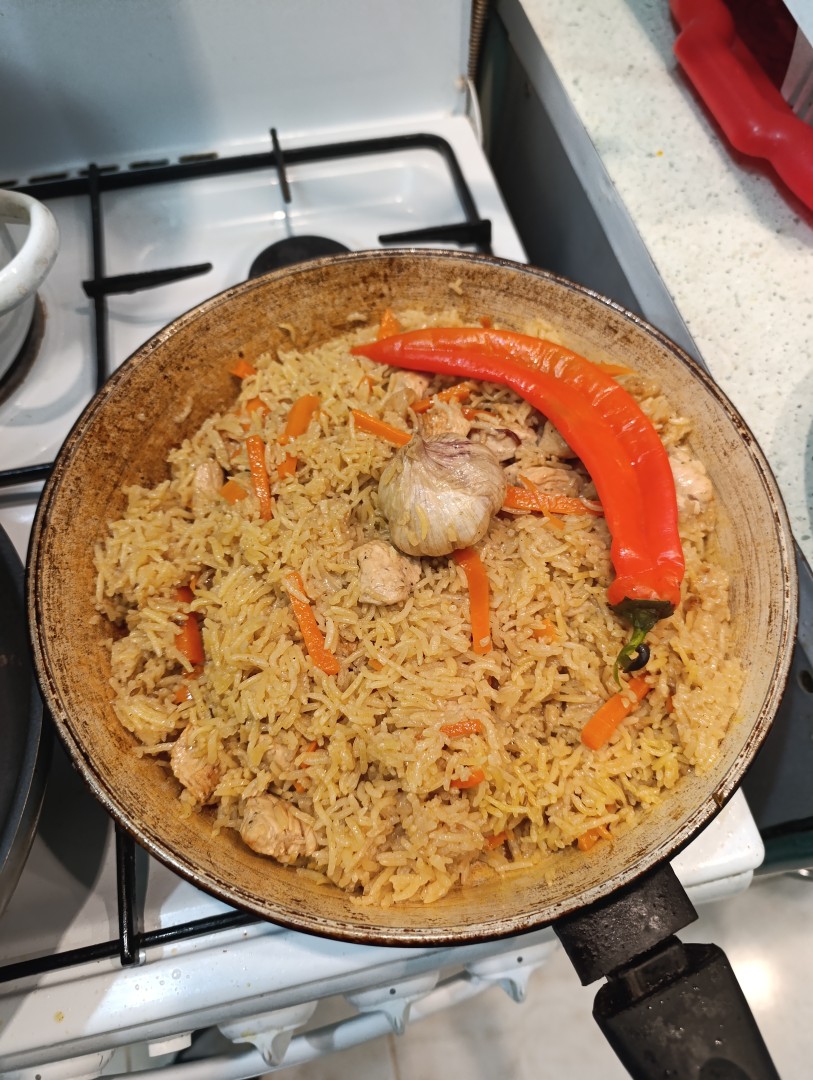 Отличный плов с курятинкой получился! Такой аппетитный красивый цвет. Ароматное блюдо. Вот так - можно с успехом для плова использовать простую кастрюлю! Спасибо большое за рецепт! Спасибо!