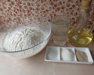 Как сделать жареные в масле пирожки на сковороде? Подготовьте продукты для дрожжевого теста. Количество муки дано примерное, может уйти как больше, так и меньше, будете смотреть по тесту. Дрожжи возьмите сухие быстродействующие. Растительное масло — без запаха. Вместо воды вы можете использовать молоко или смесь воды с молоком.